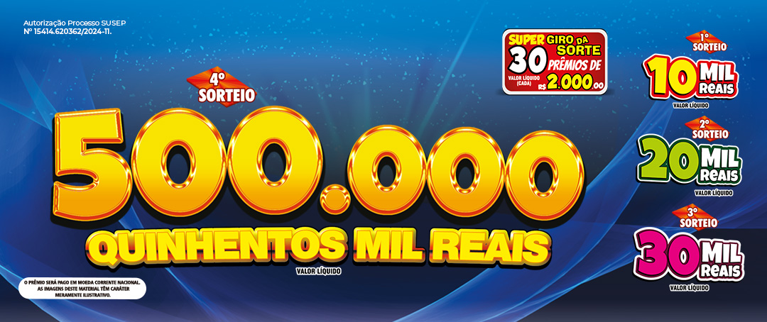 40 PRÊMIOS DE R$ 1.500,00 (cada) - Valor líquido